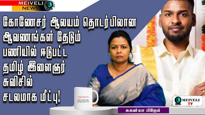 0% 0 🔴கோணேசர் ஆலயம் தொடர்பிலான ஆவணங்கள் தேடும் பணியில் ஈடுபட்ட தமிழ் இளைஞர் சுவிசில் சடலமாக மீட்பு! view more