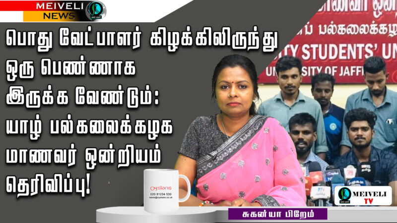 0% 0 பொது வேட்பாளர் கிழக்கிலிருந்து ஒரு பெண்ணாக இருக்க வேண்டும் – யாழ் பல்கலைக்கழக மாணவர் ஒன்றியம் view more