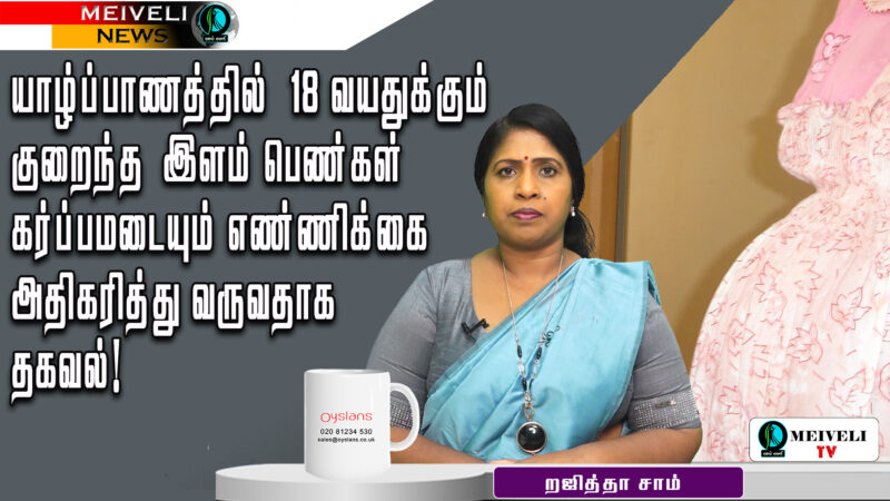 0% 0 யாழ்ப்பாணத்தில் 18 வயதுக்கும் குறைந்த இளம் பெண்கள் கர்ப்பமடையும் எண்ணிக்கை அதிகரித்து வருவதாக தகவல் view more