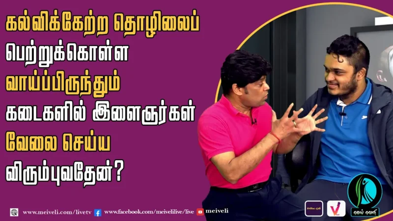 0% 0 கல்விக்கேற்ற தொழிலைப் பெற்றுக்கொள்ள வாய்ப்பிருந்தும் கடைகளில் இளைஞர்கள் வேலை செய்ய விரும்புவதேன்? view more