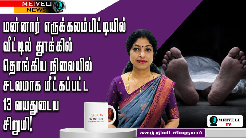 0% 0 மன்னார் எருக்கலம்பிட்டியில் வீட்டில் தூக்கில் தொங்கிய நிலையில் சடலமாக மீட்கப்பட்ட 13 வயதுடைய சிறுமி view more