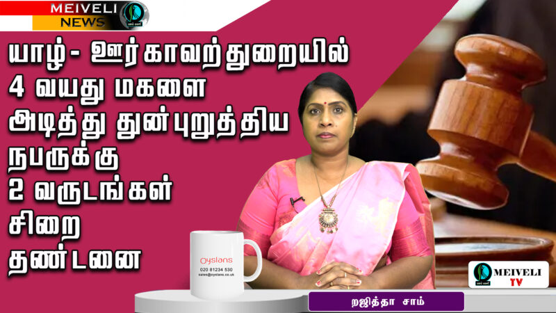 0% 0 யாழ்- ஊர்காவற்துறையில் 4 வயது மகளை அடித்து துன்புறுத்திய நபருக்கு 2 வருடங்கள் சிறை தண்டனை! view more
